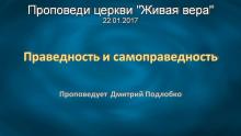 На воскресном богослужении 22 января пастор Дмитрий Подлобко, продолжая серию проповедей о Божьей безусловной благодати, учил на тему “Праведность и самоправедность”.