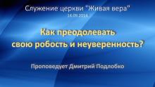 14 сентября в церкви “Живая вера” прошло воскресное богослужение, на котором пастор Дмитрий Подлобко проповедовал о том, как мы можем преодолевать робость и неуверенность в себе и справляться со своими внутренними проблемами.